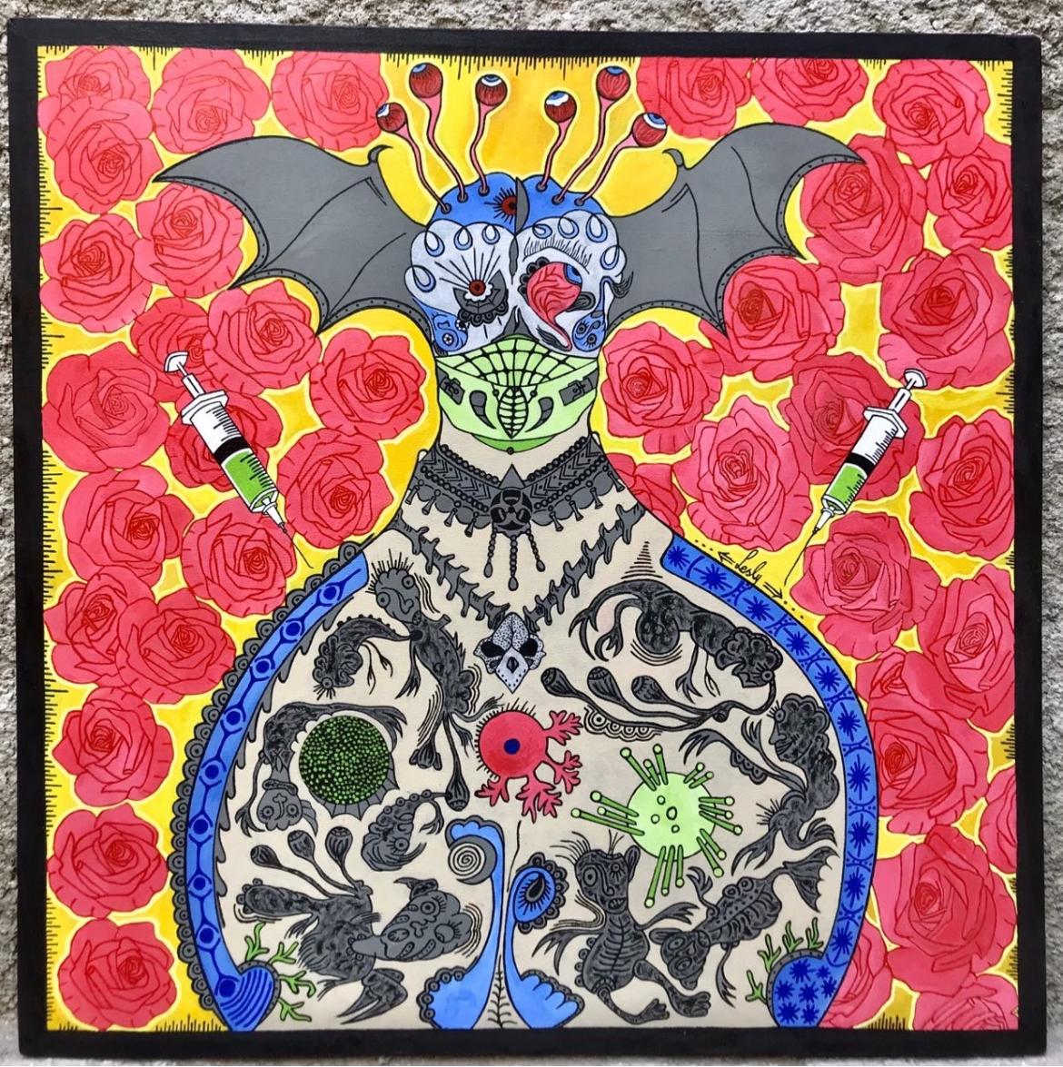 Through raw textures and organic forms, this work expresses both the chaos of the pandemic and the quiet strength of nature’s remedies.