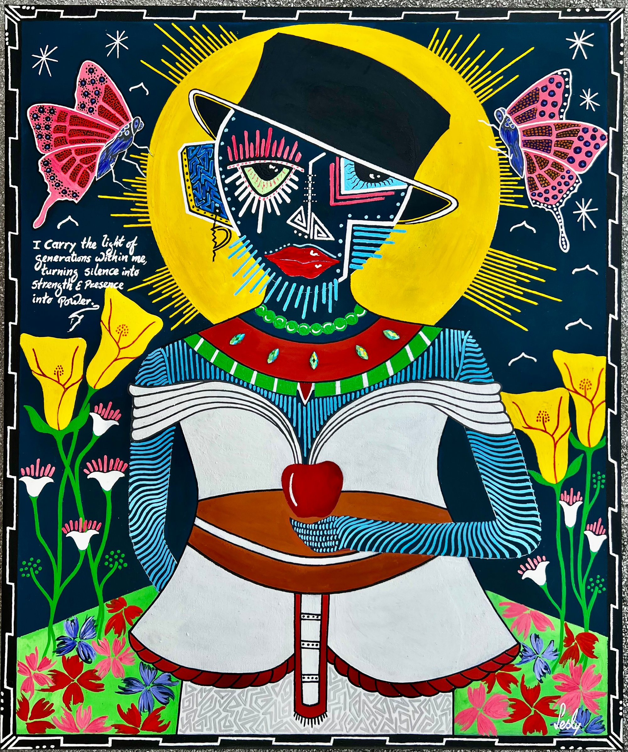 This painting honors the feminine divine as a force of balance, regeneration, and sacred knowledge where nature and spirituality exist as one.