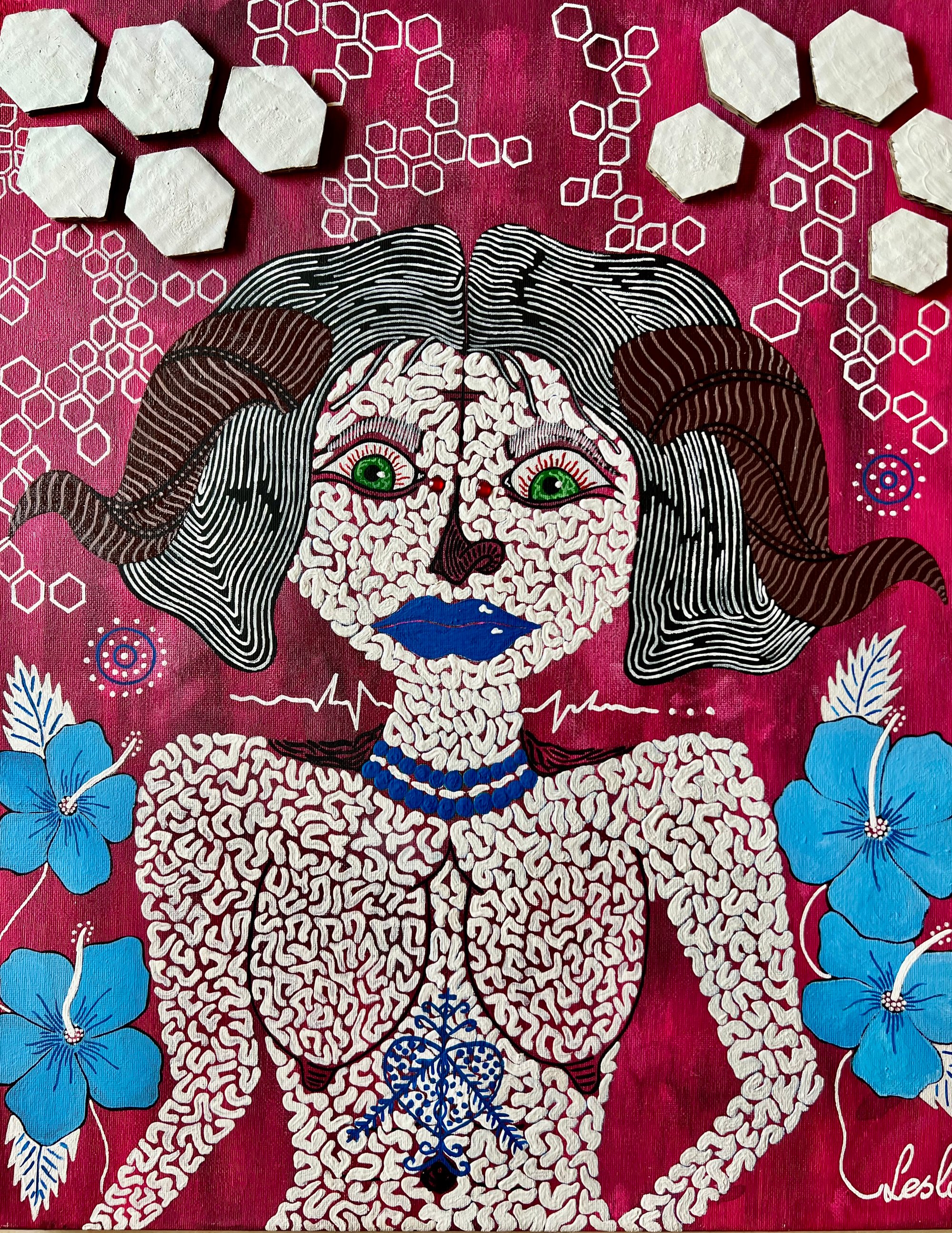 This painting inspired by Erzulie Mapiangue, she’s a compassionate spirit (Iwa) within the Vodou tradition, associated with motherhood, childbirth, and the protection of infants. She embodies the nurturing aspects of femininity, offering comfort and support to mothers and their children. In my piece this Mysterious woman brings positive energies in women Life and let them know they’re so important for the humanity 💙